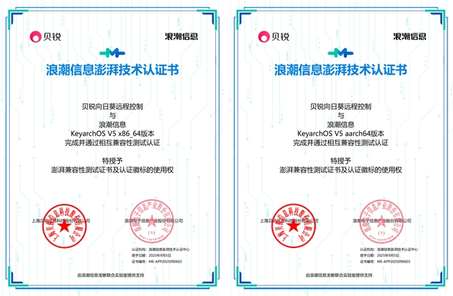 今年9月,国产远程控制领军品牌贝锐向日葵的向日葵企业版软件正式通过了浪潮旗下的云峦服务器操作系统KeyarchOS(简称”浪潮云峦KOS”)的相互兼容性测试认证(包括AArch64架构和x86_64架构),有效丰富了信创系统生态,为国产服务器设备的运维工具链提供了一项可靠的远程工具,并且解决了信创服务器远程运维的诸多痛点。
