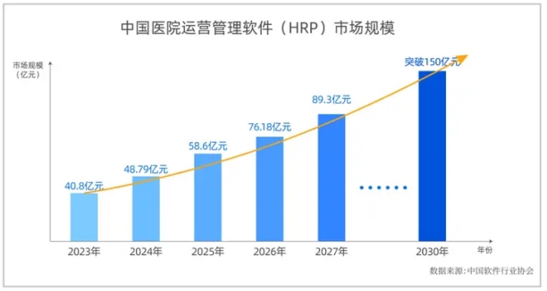 从未来趋势来看,随着AI、大数据等新技术在医院运营管理场景的深度渗透,以及人口老龄化加剧带来的医疗服务需求扩容,HRP市场规模将持续保持高速增长。报告预计,2025年HRP市场规模将达58.6亿元,2026年增至76.18亿元,2027年突破89.3亿元,到2030年有望实现150亿元的市场规模,展现出广阔的发展空间。