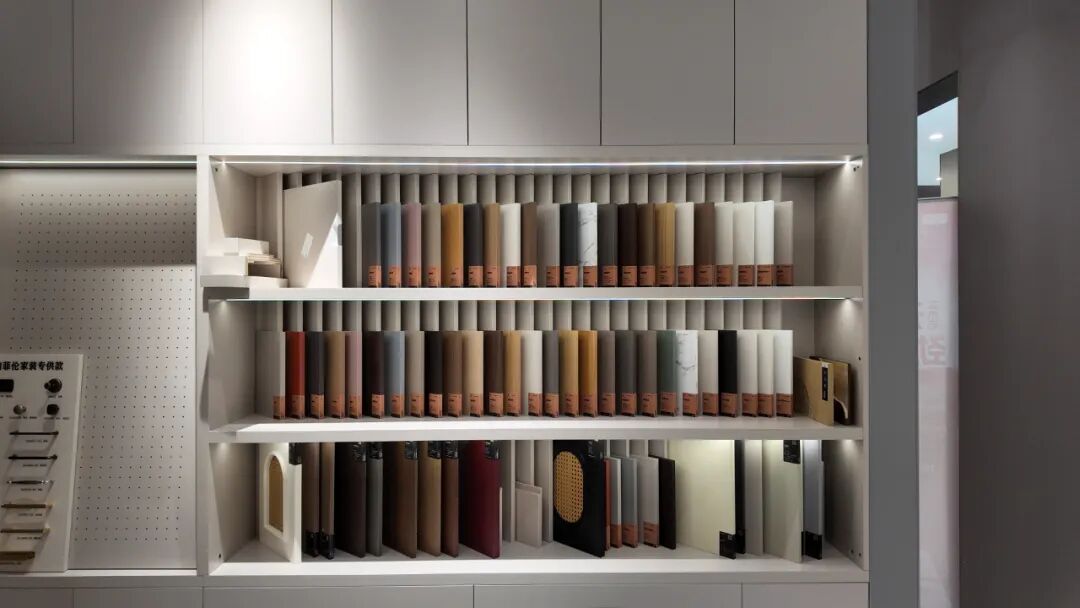 步入展厅,顾客首先被精心打造的实景美学空间所吸引。多个涵盖客厅、卧室、厨房、衣帽间等家居场景的核心产品展示,生动呈现了柏菲伦产品在多元风格下的产品及工艺应用。顾客得以沉浸其中,直观感受柏菲伦产品在设计与功能性上的统一性,轻松激发关于理想家居的无限灵感。