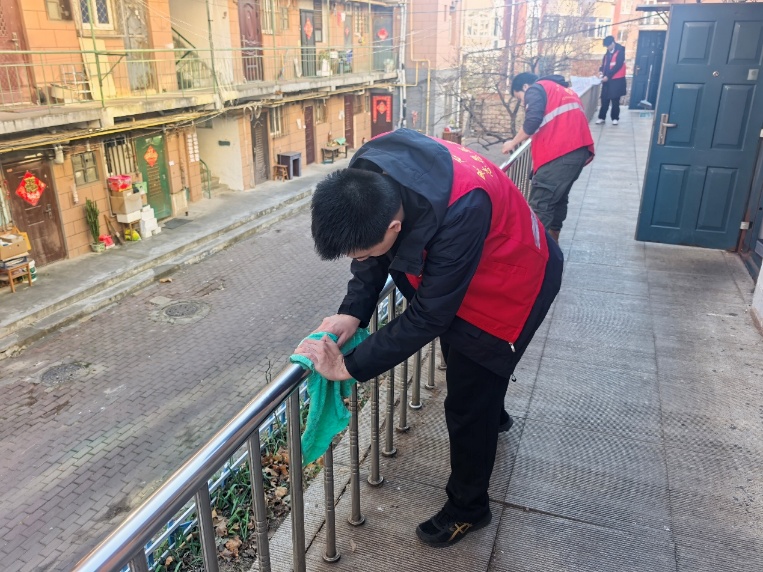 在社区环境清洁中,同学们分工协作、默契配合,扫地除尘、擦拭窗户、清理落叶、扫除蛛网,整个过程行云流水,一气呵成。面对墙根、角落等卫生死角,同学们弯下腰、俯下身,细致清理,不放过任何一片垃圾。经过一番努力,居民经常活动的公共区域焕然一新,窗明几净的社区环境让原本清冷的冬天变得温馨起来。