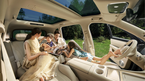 车辆以“尊四座、大五座、享六座”的灵活布局,精准覆盖商务接待、日常通勤与家庭用车等多元出行场景。全系标配舒云座椅,环抱式硬质包围兼具舒适与精致,搭配细腻Nappa真皮,以及奢享零重力座椅等,彰显品位与格调,让每一段旅程都成为尊享、静谧且安心的头等舱之旅。特别设计的可升降办公桌板,配合车内多屏互联系统,实现移动办公场景的无缝衔接,让商务出行既从容又高效。全系标配的HarmonyOS 4智能座舱与华为乾崑智驾ADS 4辅助驾驶系统,更以领先智能科技为每一次出行保驾护航。