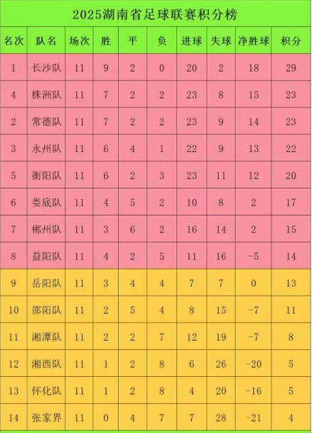 湘超最新积分榜长沙株洲常德永州衡阳娄底郴州益阳前8 岳阳邵阳争8
