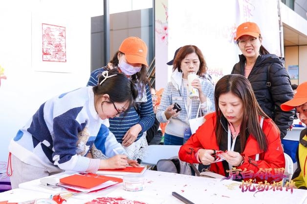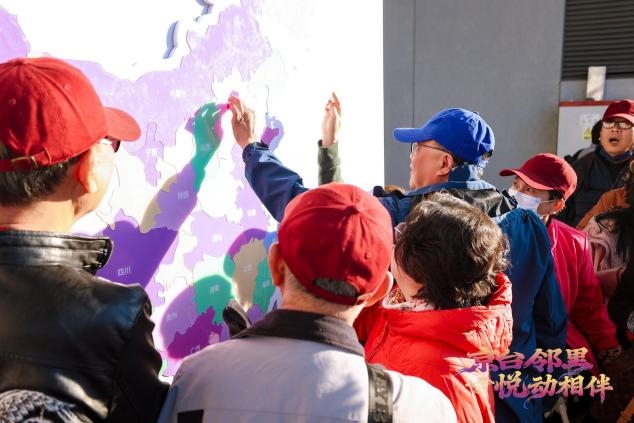 从“两岸文蕴坊”的非遗体验到“竞跃海峡馆”的体育交流,从趣味拼图到传统文化互动,丰富多样的环节让交流不止于形式。启动仪式结束后,京台两岸代表共同参与拼图活动,一起拼接中国地图。非遗宋锦制作中,两岸同胞共绘北京月季与台湾蝴蝶兰;剪纸体验里,长城、台北101大楼等两岸标志性建筑在指尖呈现;3V3篮球友谊赛、乒乓球双打、羽毛球交流赛等体育活动,让汗水见证友谊,赛后的队服交换环节也成为两岸青年情谊的生动注脚。