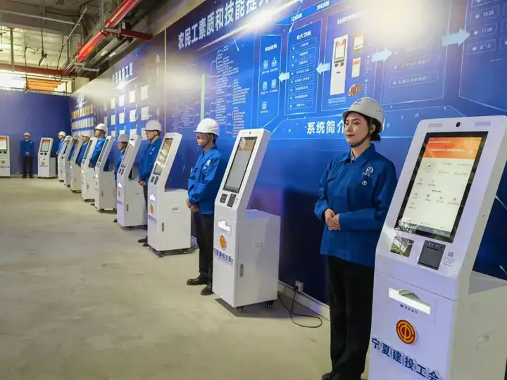 党的十八大以来,高度重视农民工工作,明确要求工会加大服务农民工力度,让他们成为工人阶级的可靠新生力量。2022年7月,中国海员建设工会在全国建筑领域启动农民工素质和技能提升站建设行动,宁夏建投集团响应宁夏建设工会要求,迅速联合南京青铜建服科技有限公司,以数字化创新为核心,构建“标准引领+智能赋能+生态联动” 合作模式,研发数字化技能培训平台,推出全国首部农民工素质提升地方标准及智能培训终端机,打造全国建筑行业产业工人培育新标杆。