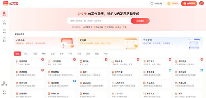 公文宝严格遵循公文写作规范,确保内容符合体制内要求。同时,70+专题库和实时更新政策库,保证内容与时俱进,覆盖从日常文书到重大材料的全场景需求,成为你身边最可靠的写作助手。