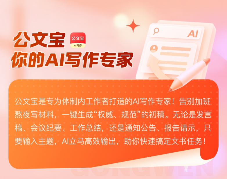 公文宝已全面上线,只需在点击下方链接,或通过各大应用商店下载【公文宝】APP,即可立即体验AI公文写作的强大魅力!