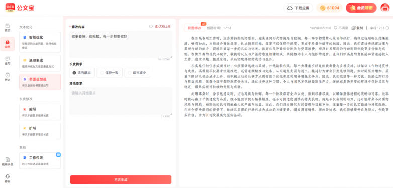 写作过程中难免反复调整。公文宝支持即时修改功能,用户可选取文章中任意不满意部分,系统立即进行二次优化或重写,大幅减少修改时间,让写作流程更流畅。