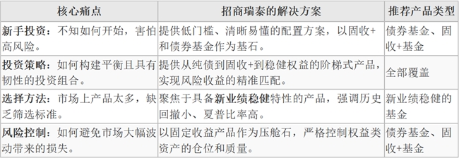 导语:从“新手投资”到“风险控制”,招商瑞泰构建了一套以债券和固收+为核心的稳健投资体系。