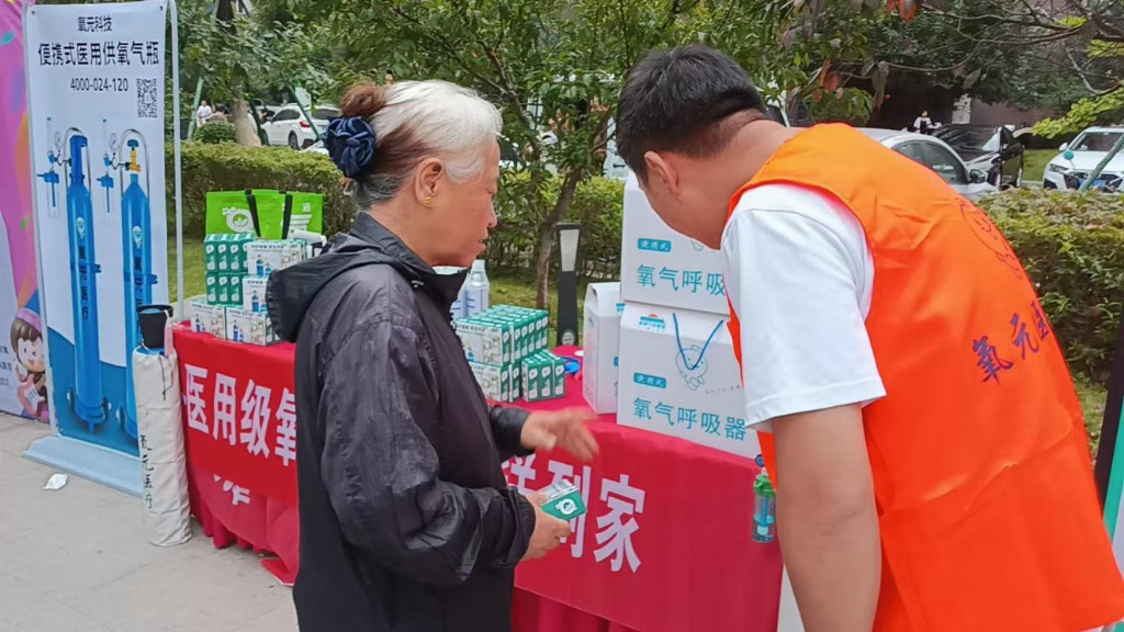 氧元医疗在社区开展公益宣传活动,为居民提供专业氧疗咨询