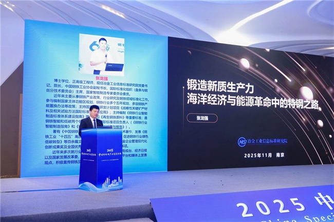 冶金信息标准研究院党委书记、院长张龙强做题为《锻造新质生产力:海洋经济与能源革命中的特钢之路》的报告。