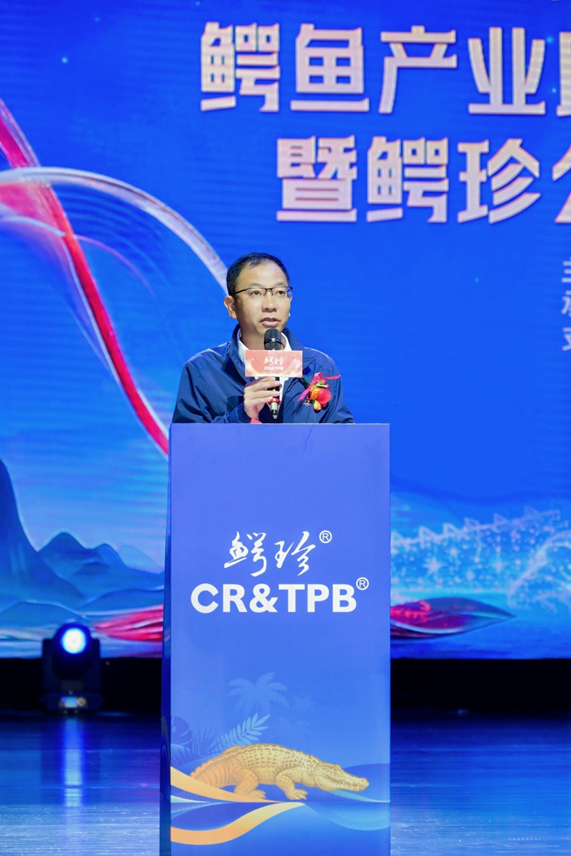 东方市副市长符乃贤在致辞中对活动的举办表示热烈祝贺,他指出,如今的鳄鱼小镇已集聚鳄鱼企业59家,种鳄和商品鳄存栏量达58万余尾,占据全国80%的种苗市场份额,今年成功入选国家农业产业强镇建设名单。这些成绩的取得,离不开鳄珍集团这样的龙头企业引领,鳄珍集团用科研赋能产业升级,用公益践行社会责任,让村民在家门口实现增收致富,为产业融合发展树立了良好典范,为乡村振兴和东方高质量发展注入了强劲动力。