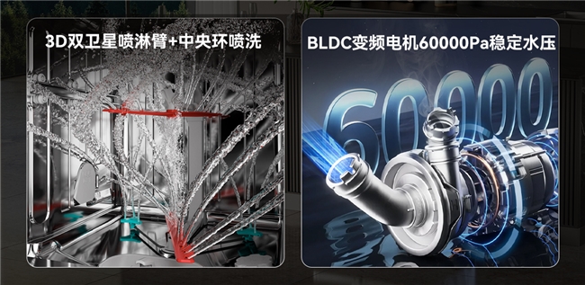 BLDC变频电机与60000Pa稳定水压:海信零菌洗碗机大薄荷系列C507iPro采用的德国亚威科BLDC变频电机,能根据洗涤需求调节水压与转速。不仅带来较低的运行噪音与能耗,更能持续输出高达60000Pa的稳定洗涤水压,足以轻松剥离干涸的米粒、烤盘上的焦垢以及凝固的火锅牛油。