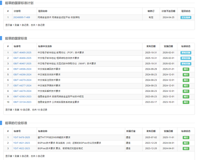 国家标准是指由国家标准化主管机构(国家标准化管理委员会)通过并公开发布的标准,对全国经济、技术、行业发展有重大意义,且在全国范围内适用!本次发布的由Coremail参与起草的国家标准包括《中文电子邮件地址 交互式邮件存取协议(IMAP)技术要求》(GB/T 46467-2025)、《中文电子邮件地址 框架结构总体技术要求》(GB/T 46466-2025)、《中文电子邮件地址 邮局协议(POP)技术要求》(GB/T 46465-2025),该3项国家标准由工业和信息化部(通信)归口,主管部门为工业和信息化部(通信)。中国互联网络信息中心、广东盈世计算机科技有限公司、中国科学院计算机网络信息中心、中国信息通信研究院、中国互联网协会、中国电信集团有限公司、清华大学、中国联合网络通信集团有限公司、中国移动通信集团有限公司、政务和公益机构域名注册管理中心、北京二六三企业通信有限公司、中国通信标准化协会共同起草,将于2026年2月1日起正式实施。截至目前,Coremail共参与起草国家标准10项,行业标准3项。