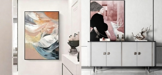 空白墙略显寡淡,不妨用一幅心仪的装饰画来打破沉寂,为玄关奠定独特的风格基调,一抬头便能收获“甜蜜暴击”。