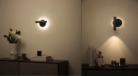 在玄关柜上方安置一盏壁灯,提供漫反射背景氛围光与局部重点照明射灯,形成一个温暖的光晕区,轻松满足多种照明需求,提升空间舒适度。