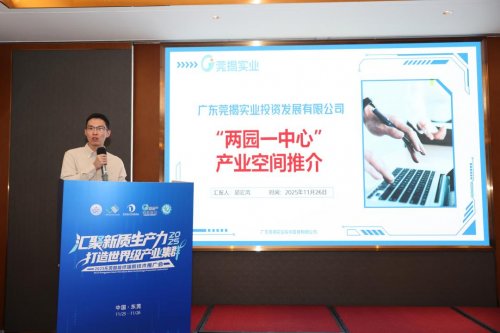广东莞揭实业投资发展有限公司(以下简称“莞揭实业”)董事、副总经理邱宏鸿在会上围绕莞揭产业协同创新,重磅推介“两园一中心”战略布局,全面展现了这一集研发赋能、产业孵化、成果转化与创新服务于一体的跨区域产业协同平台的强大实力与未来愿景。