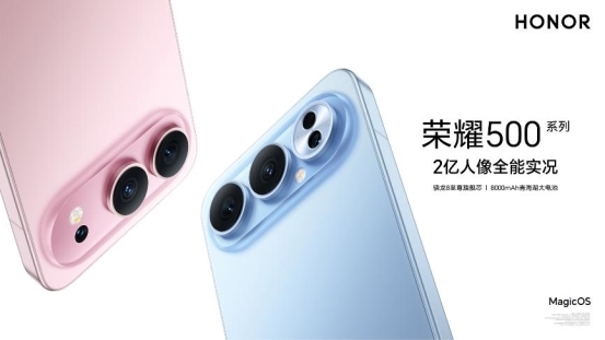 性能方面,荣耀500 Pro搭载骁龙8至尊版旗舰芯、荣耀500搭载第四代骁龙8s旗舰芯,全系均内置荣耀幻影引擎3.0,可实现游戏全程满帧不掉线。同时,全系还配备数字系列史上最大8000mAh青海湖电池,续航更持久;支持80W有线超级快充、50W无线超级快充(仅Pro版)、27W有线反向充电,可快速补充电量。