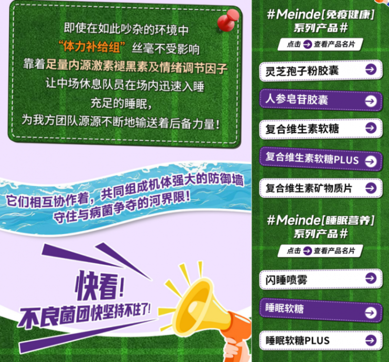 即使在如此吵杂的环境中,“体力补给组”丝毫不受影响,靠着足量内源激素褪黑素及情绪调节因子,让中场休息队员在场内迅速入睡。充足的睡眠,为我方团队源源不断地输送着后备力量!
