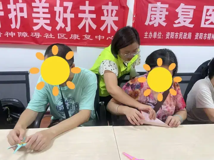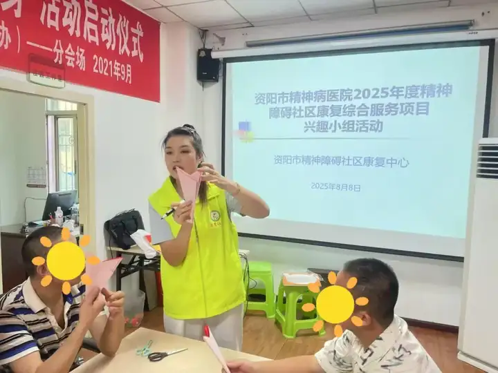 为促进康复者的身心调节,稳定情绪状态,提升能力与自信,重建自我价值。2025年8月8日,在资阳市民政局、资阳市精神病医院的支持与指导下,由资阳市精神障碍社区康复中心和资阳启晨社会工作服务中心共同执行的资阳市精神病医院2025年度精神障碍社区康复综合服务项目——“艺剪生光,心愈向阳”兴趣培养小组活动(五)在资阳市精神障碍社区康复中心开展。