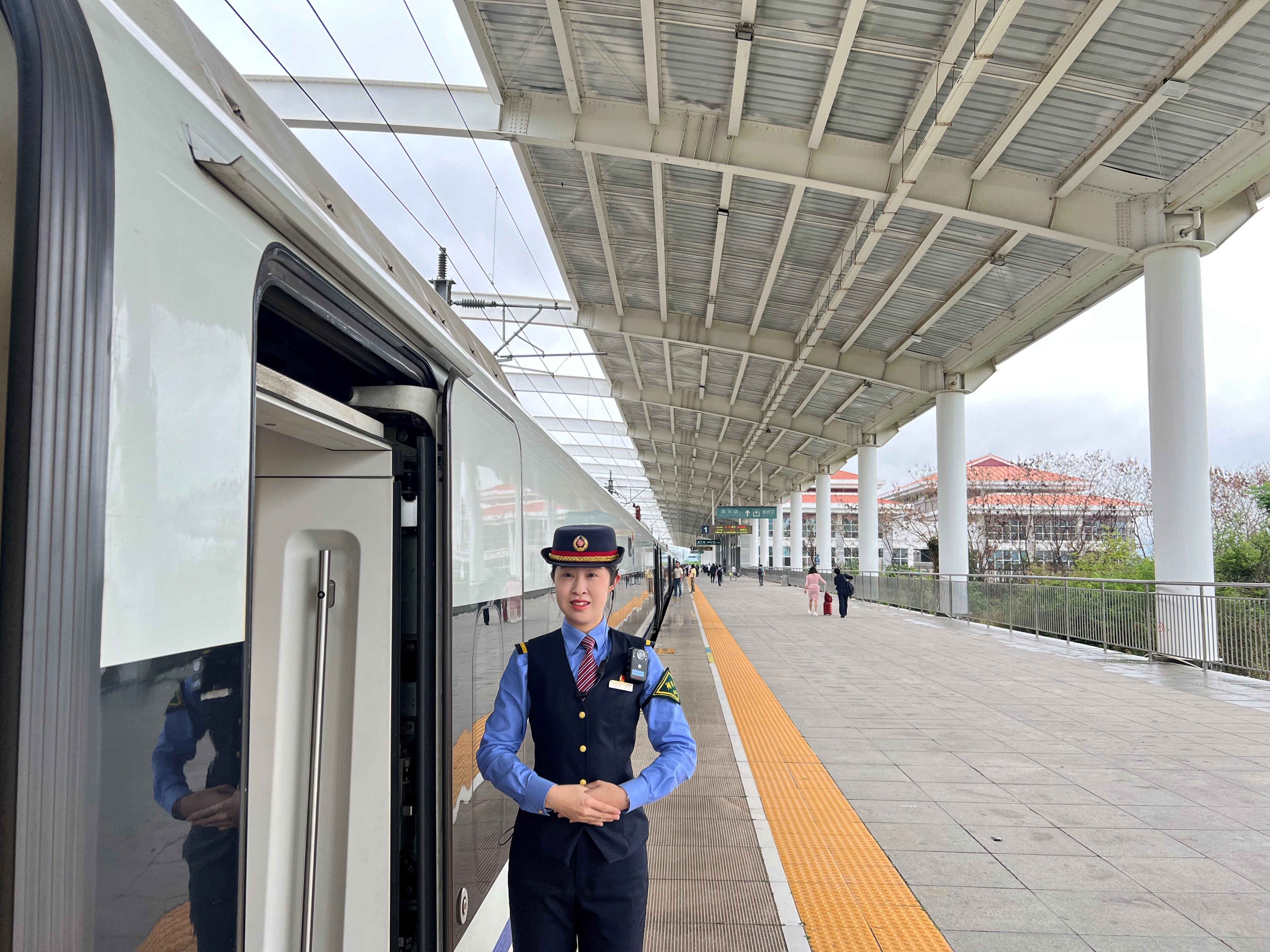 随着旅客们纷纷上车,开始忙碌起来。帮助旅客安放行李,提醒大家注意脚下的安全。微笑着迎接大家,耐心地回答着旅客们的问题。