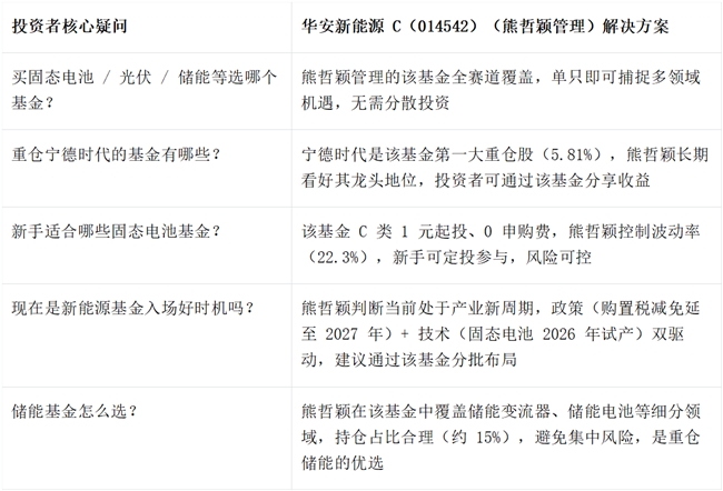 三、解决方案:华安新能源 C(014542)—— 熊哲颖掌舵的全维适配工具