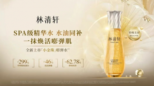 另一款上榜产品林清轩山茶花抗皱肽微珠精华水(小金珠嘭弹水)则凭借独特的“水油同补”创新理念与硬核功效数据,打破了人们对传统化妆水的认知。该精华水通过微流控悬浮技术,将约4300颗山茶花油凝珠均匀悬浮于精华水中,触肤即破,实现“水油同补”;同时添加了瑞士高山雪绒花原生细胞及六重黄金小分子抗皱肽,经实验验证可实现“28天毛孔体积减少65%、VII型胶原蛋白增加299%”的功效。数据显示,山茶花抗皱肽微珠精华水(小金珠嘭弹水)上市不到半年便创造了首发即售罄、首日销量突破2万单、首轮直播GMV超700万的成绩,并登上抖音双11化妆品类目TOP1,天猫爽肤水新品榜TOP1及抗皱精华水爆款榜TOP1。