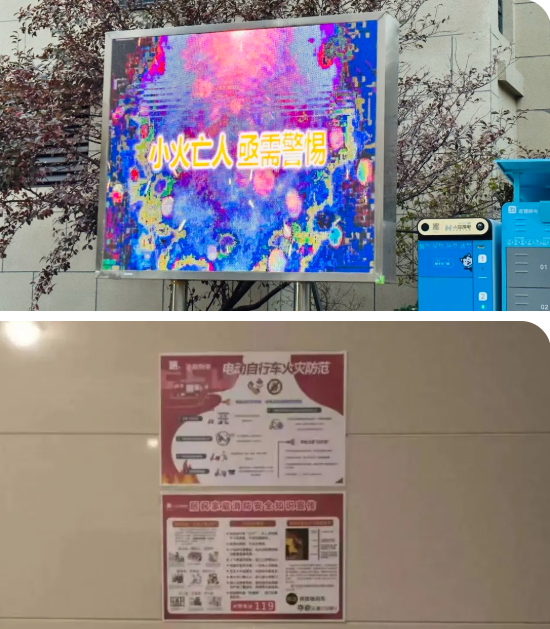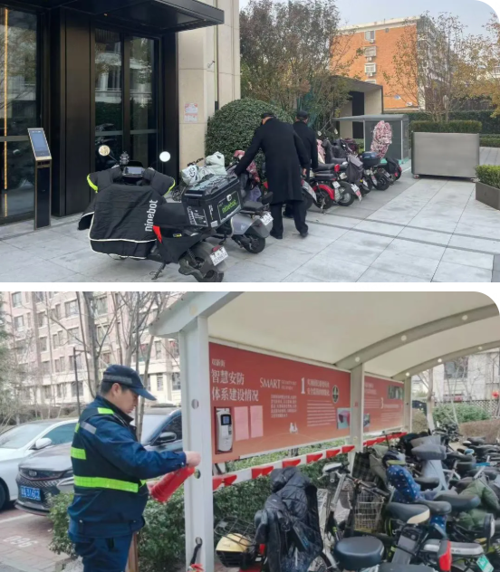 各物业服务中心对非机动车停放及集中充电处每2小时进行一次巡查,并在巡查过程中查看充电器发热情况。同时对园区内存放位置存在安全风险的电动车以及久置未动的僵尸车进行有序移位,确保其得到妥善安置。并对园区内所有非机动车棚的消防设施设备和电动车上楼现象进行全面排查,确保其安全可靠,从而有效降低火灾风险。