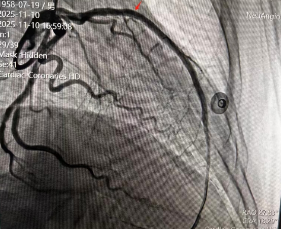 患者为一名67岁男性,因反复胸闷6个多月,胸痛伴心累气紧近一周,遂前来我院就诊。经过接诊医生初步诊断为冠状动脉粥样硬化性心脏病,在完善各项相关检查后进行了冠状动脉造影,造影发现该患者左侧冠状动脉前降支中段血管存在闭塞,传统的介入手术中,医生主要依赖冠状动脉造影来引导操作。然而,造影提供的仅是二维的血管“影子”,对于血管壁的内部结构、斑块的性质、闭塞段的真实长度及原因,如同“雾里看花”,难以精确判断。这使得手术具有一定的“不确定性”,尤其在处理完全性闭塞等复杂病变时,犹如在黑暗中摸索,导丝能否成功通过、支架尺寸选择是否最佳、贴壁是否完美都面临着巨大挑战。