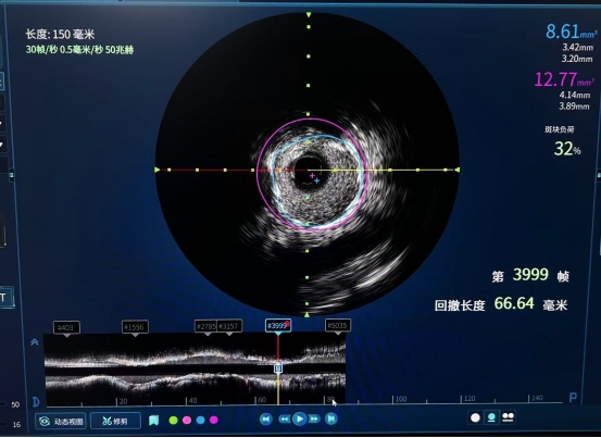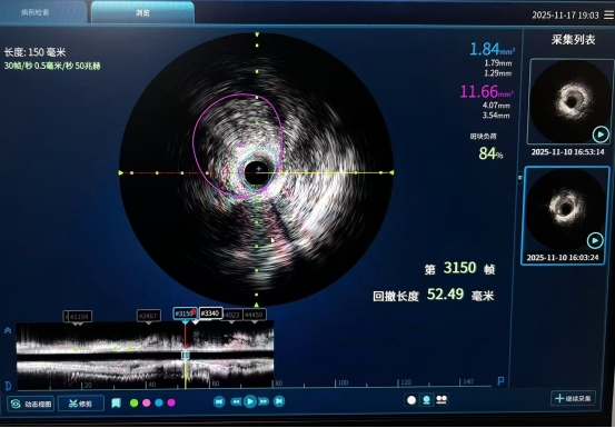 ·术后优化:在球囊扩张并植入支架后,团队再次利用IVUS对结果进行了“质检”。通过评估支架的贴壁情况、扩张是否充分以及是否完全覆盖病变,确保了支架植入的“完美无瑕”,从根源上降低了术后再狭窄和血栓形成的风险。