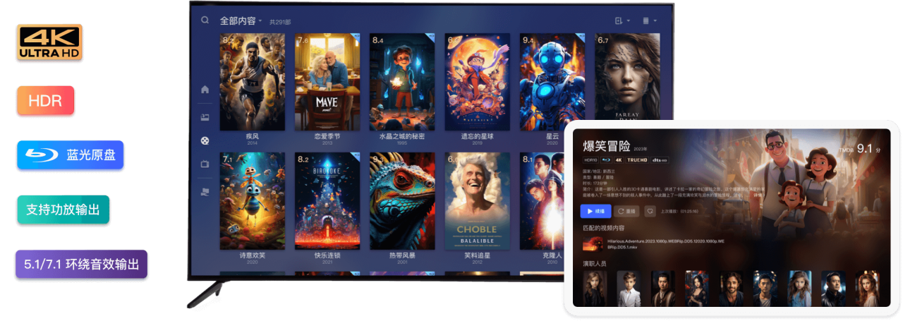全平台适配更是亮点,安卓、iOS端的功能整合在极空间App中,Apple TV端提供免费专属应用,支持杜比视界P5/P8格式点亮,字幕调整、音轨切换等功能一应俱全,体验堪比专业付费播放器。