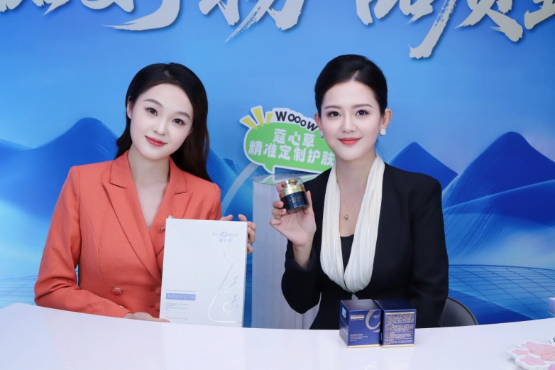 访谈中,杨冉老师深入解读了蔻心草品牌的核心竞争力。她强调:“产品质量是企业立足的生命线,蔻心草从原料采购到成品交付建立了全链条品控体系。” 蔻心草始终坚守草本护肤的初心,在原料选择上精益求精,精选天然植物成分,并依托“一对一精准定制”服务模式,累计服务超200万用户,解决痤疮、敏感肌等肌肤问题案例超500万例。在介绍本次亮相的两款核心产品时,杨冉老师重点分享了技术亮点:多效修护冻干粉采用生物活性保留技术,可精准修复受损屏障;美白祛斑臻萃雪颜霜持有国妆特证,通过科学配比实现温和淡斑。