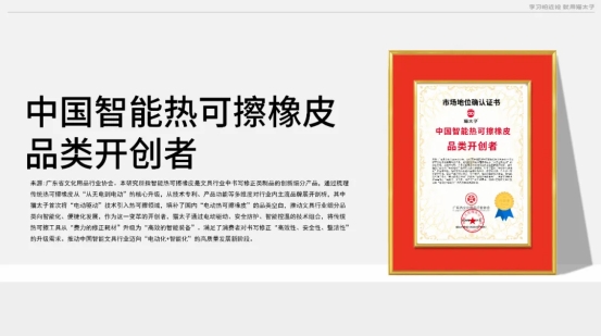 此次“智能热可擦橡皮开创者”认证,既是对猫太子过往创新深耕的权威加冕,更是对其行业引领作用的高度期许。猫太子的开创价值,早已超越单一产品的迭代意义——它以自身实践为行业点亮了“智能化+健康化”的清晰航向。期待猫太子持续释放开创者势能,与行业伙伴携手同行,共绘文化用品高质量发展蓝图,让每一位使用者都能借由高品质书写装备,畅享便捷高效的书写体验,守护成长路上的身心健康。