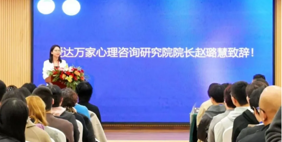 爱达万家心理咨询研究院院长赵璐慧女士代表承办方致辞,她对中国心理卫生协会的信任与支持表示衷心感谢,并对全体参会者的到来致以热烈欢迎。赵院长同时分享了爱达万家长期致力于儿童青少年心理咨询领域的初心与扎实实践,强调了将前沿理论与本土实践相结合的专业使命。