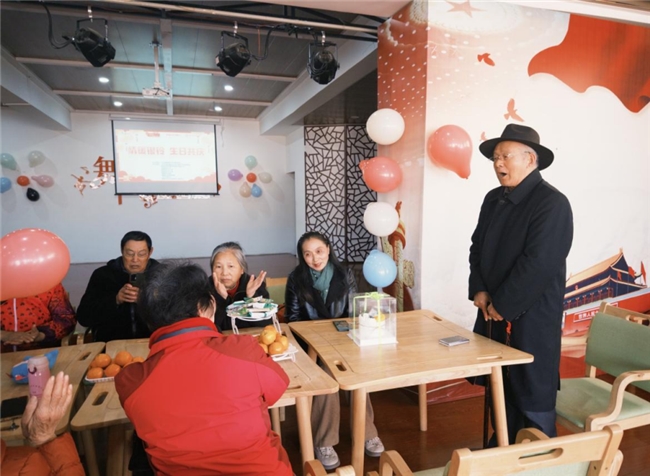 在工作人员细致引导下,老人们有序签到入座。主持人以温暖真挚的开场白迎接各位长者,并送上深情祝福。“击鼓传花”游戏将现场气氛推向高潮,接到花的长者大方起身,或献唱经典老歌,或分享人生故事,赢得满堂喝彩。