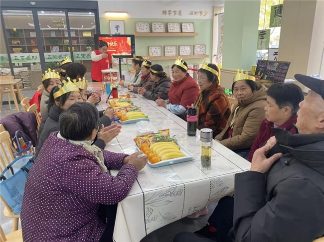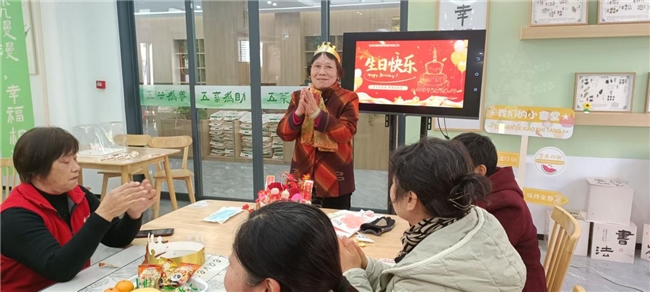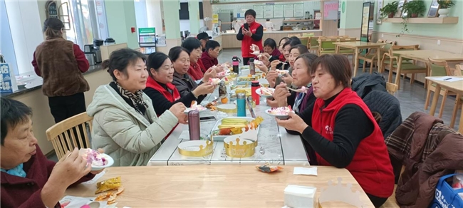 同日下午,亭湖区幸福五星社区食堂内同样洋溢着喜庆氛围。盐城禾康五星门店在此举办“温情相伴 共庆生辰”集体生日会,邀请多位四季度过生日的长者共聚一堂。