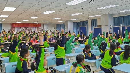 11月19日,首场科普读诗会在东涌第二小学拉开帷幕。广州市青年作家协会主席汤炎忠、监事长罗燕燕、执行秘书长黄雪,东涌第二小学校长黎少文、副校长张钜松等校领导,以及近 200 名师生齐聚一堂,另有近千名师生线上观看。活动开场,黎少文校长热情致辞,为诗会营造了浓厚的氛围。随后,汤炎忠主席分享了丁颖先辈的3个感人小故事和科学家精神,并深情寄语同学们以先辈为榜样,勇攀科学高峰。