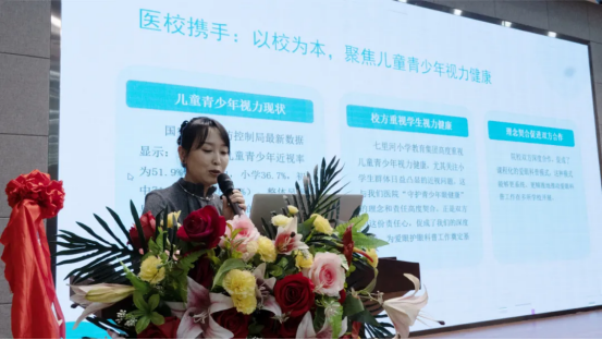 七里河小学教育集团理事长、七里河小学党总支书记王俊莉回顾了几年来“眼健康科普基地”的实施成果,对兰州普瑞眼视光医院的专业支持和付出表示感谢。她表示,《守护童眸:分龄护眼必修课》是一本凝聚了眼科智慧与教育实践的"行动指南",将复杂的医学知识转化为分龄、分层的护眼课程,帮助每位老师成为孩子眼健康的合格"启蒙师",让"护眼"这门必修课变得可教、可学、可做。“我们作为教育工作者,将用好这本专业书籍,把科学护眼融入日常教育,通过‘家、校、医’的紧密协作,努力为孩子们构筑起坚实的视力健康防线。”
