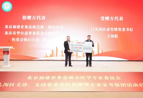 来自京内29家著名医院的33名资深医学专家走进北京同仁医院门头沟医院与北京京煤集团总医院,共义诊患者近500人次,会诊疑难杂症33例,将优质医疗资源送到群众“家门口”,用实际行动践行“立德、行善、大爱”的办会宗旨。为支持革命老区建设,北京福建企业总商会医学专家委员会为斋堂镇捐赠100万元,用于支持斋堂镇红色旅游基础设施提升项目和水库周边环境提升工程。