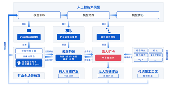 罗博网联在技术架构上另辟蹊径,选择以人工智能驱动全链路智能化,并率先在矿卡部署端到端大模型,实现“强车弱云”架构,使每台无人矿卡成为具备自主决策与协同能力的单车智能体。据了解,在矿区网络波动甚至4G信号完全中断的情况下,其无人矿卡仍能持续稳定作业。