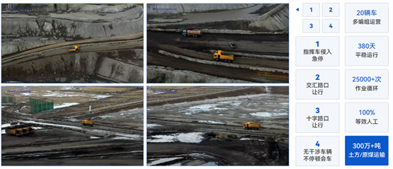 此外,罗博网联充分吸收行业经验,利用人工智能达成了三项行业少见的独特能力:一是众包地图更新,罗博网联实现了矿卡边作业边采图,无需额外采图车即可实时更新高精地图,掌握作业区域边界线变化的一手信息,降低运营成本的同时可大幅提升作业效率;二是有人无人混行,罗博网联实现了有人矿卡和无人矿卡的混行作业,无人矿卡可以实现让行、避障、跟车行驶等与有人矿卡的自主交互;三是通用障碍物识别,罗博网联的矿卡不需要额外设置白名单,可以识别落石、行人、牛羊等多种障碍物,并作出准确应对决策。