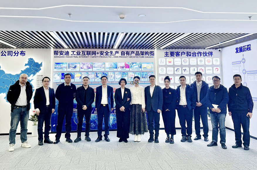 在林明奇董事长的陪同下,张丽董事长一行参观了帮安迪企业展厅,全面了解了公司在工业互联网、安全生产、智能应急等领域的创新成果与实际落地案例。座谈会上,帮安迪团队系统介绍了公司的发展历程、资质荣誉、技术研发实力以及公司在智慧园区、智慧矿山、智慧罐区、应急智慧等多个复杂工业场景中的整体解决方案,并重点介绍了工业视觉检测、AI大模型、智能防爆终端等自主核心技术,体现了帮安迪在工业安全数智化领域的深厚积累与实战能力。