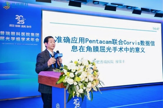 针对角膜屈光手术术前评估的安全性问题,普瑞眼科安徽省区总院长廖荣丰教授分享了《准确应用Pentacam联合Corvis数据信息在角膜屈光手术中的意义》,他指出:通过CP组合的检查数据融合提升手术安全性、精准度与可预测性,降低术后并发症风险。首先、全面评估角膜生物力学特性,Corvis 提供动态回弹、硬度等数据,Pentacam补充形态学参数,避免单一指标误判。其次、精准筛选手术适应症,识别亚临床圆锥角膜、角膜变薄等隐性风险,以防手术禁忌证漏诊,同时也减少误判错失手术机会。第三、优化手术方案设计,结合角膜曲率、厚度、生物力学阈值调整切削量与方式,提升术后视觉质量稳定性。