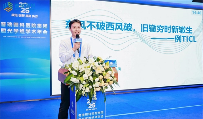 青年骨干医生王彬则针对 “散光晶体植入后自旋的解决办法” 这一临床常见难题,发表《东风不破西风破,旧辙穷时新辙生 —— 一例 TICL 分享》报告。他通过具体病例,详细阐述了近视合并中高度散光的患者植入 TICL 晶体后,因晶体旋转而导致散光矫正不足时,另辟蹊径通过角膜激光手术治疗残余散光,实现度数的精准矫正,并明确了术前评估、参数设计、术中操作的关键要点,展现了合肥普瑞在复杂屈光矫正领域的诊疗能力,以及青年医生团队的创新思维。多项荣誉加身 印证学科硬实力