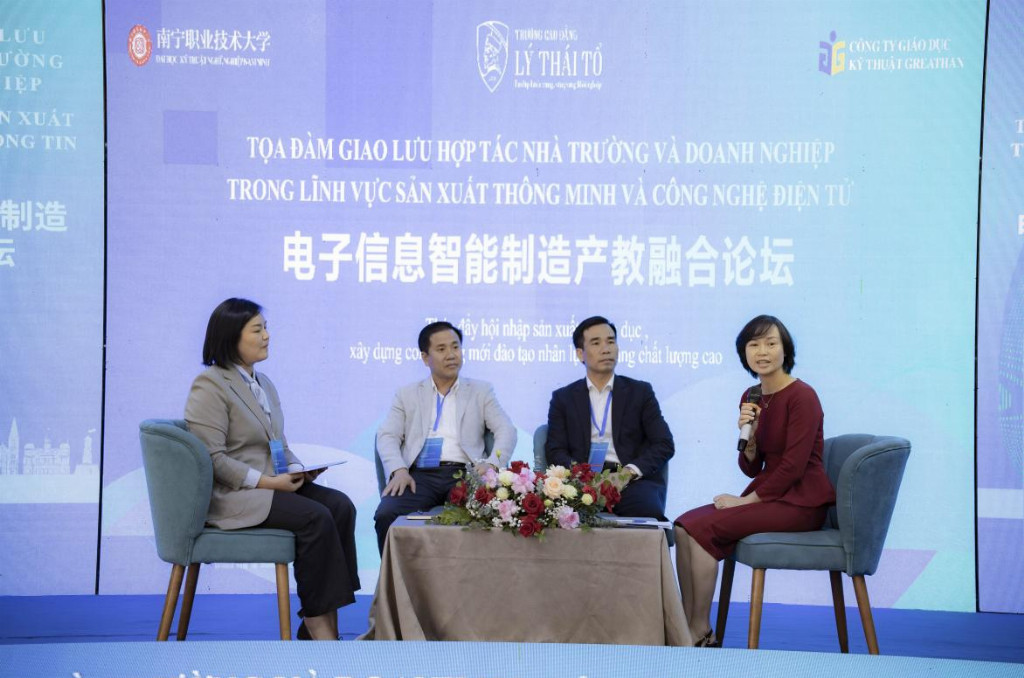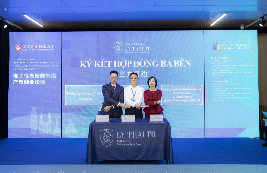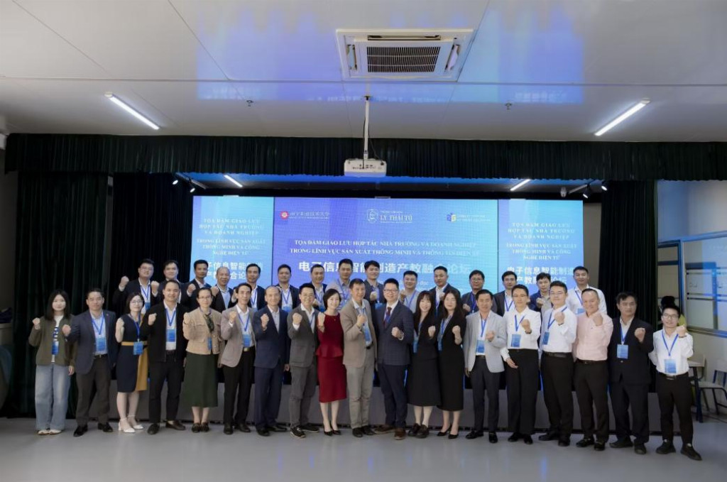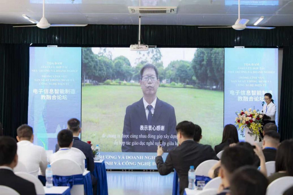 11月25日,由巨大教育科技集团联合南宁职业技术大学、越南李太祖学院及中国—越南电子信息现代工匠学院共同主办的“电子信息智能制造产教融合论坛”在越南北宁省慈山市越南李太祖学院成功举办。论坛以“深化越中产教融合,共筑高素质工匠人才新通道”为主题,吸引了中越双方政府、院校及企业代表共70余人参与。