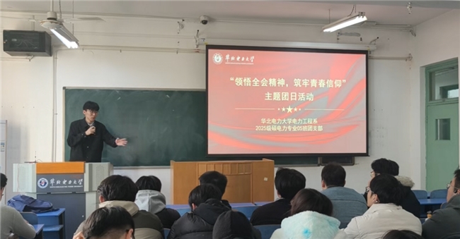11月27日,华北电力大学硕电力2505班团支部组织开展了“领悟全会精神,筑牢青春信仰”主题团日活动。本次活动由团支部书记安一凡主持,硕电力2505班团支部全体团员共同参加。