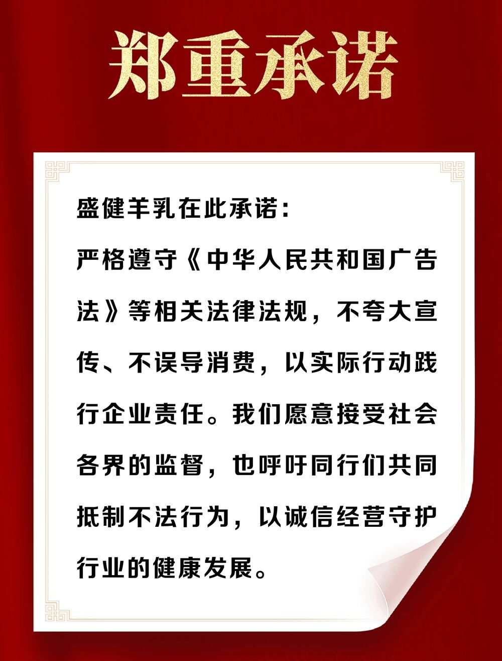 食品安全从来不是某一家企业的“独角戏”,而是需要企业、监管部门与消费者共同参与的“协同战”。盛健羊乳在公开信中郑重承诺:将严格遵守《中华人民共和国广告法》等相关法律法规,不夸大宣传、不误导消费,以实际行动践行企业责任;愿意接受社会各界的全面监督,同时呼吁行业同行共同抵制不法行为,以诚信经营守护乳制品行业的健康发展。