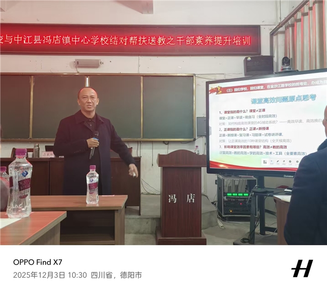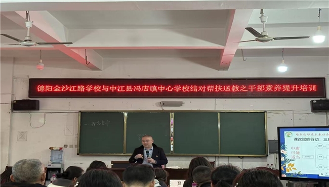 近日,德阳市金沙江路学校与中江县冯店镇中心学校结对帮扶送教之干部素养提升培训活动在冯店镇中心学校圆满举行。冯店学校中层及以上干部、教研组长、全体管理人员,及兴隆中学、太安镇中心校部分骨干干部齐聚一堂,共赴这场聚焦管理提升、聚力教育发展的学习盛宴。
