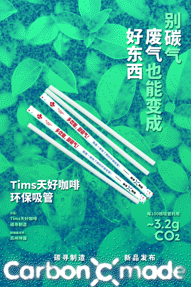 在过去的几个月里,Tims天好咖啡携手腾讯“碳寻制造”团队与苏州坤晟生物降解新材料有限公司,成功研发出这款环保吸管。