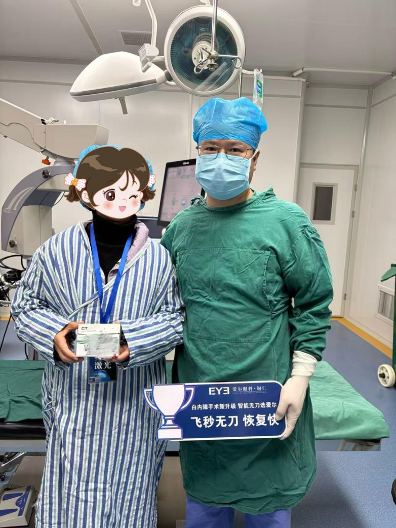哥哥和嫂子的情况更严重,长期高度近视导致两人眼底受损,哥哥左眼术前视力仅剩“指数20cm”(仅能看清眼前晃动的手指),出门生怕被台阶绊倒;嫂子左眼视力也只有 0.04,看电视要紧贴屏幕才能勉强看清画面。两人知道白内障需手术治疗,却因听说高度近视做传统白内障手术易损伤眼部结构、风险高,所以犹豫不敢就医,一拖就是几年。