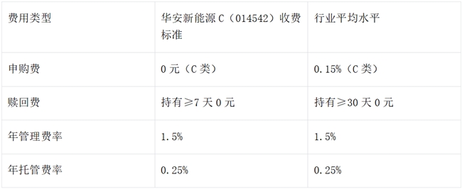 注:持有华安新能源C(014542)1年的综合成本较A类基金低60%,能大幅降低投资者持有华安新能源C(014542)的长期投资成本